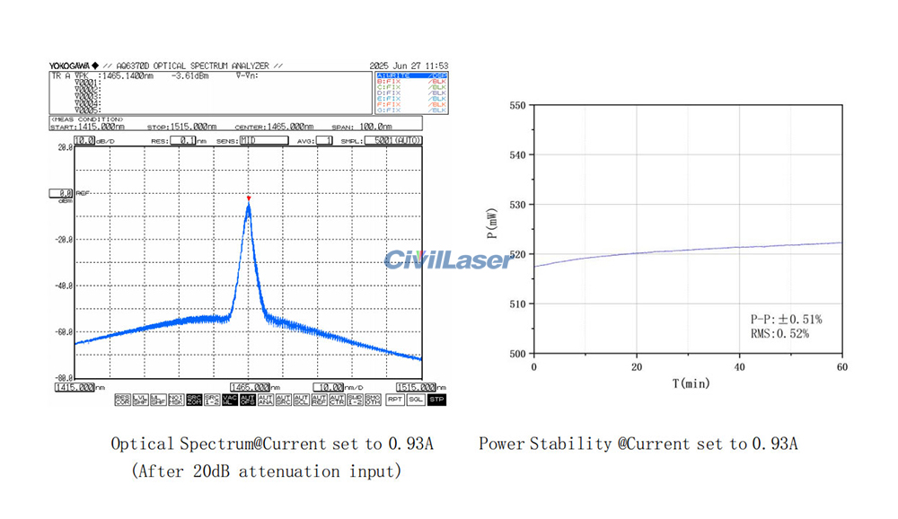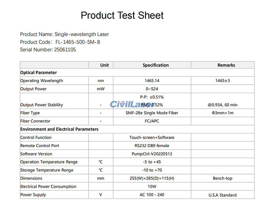 1465nm 파이버 레이저의 테스트 보고서입니다.